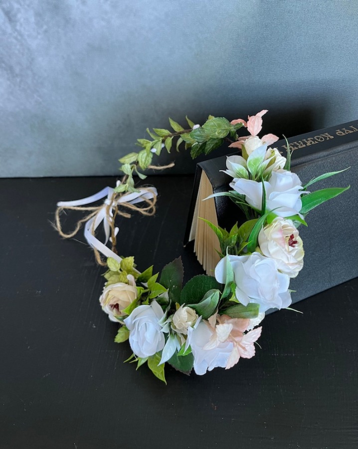 Объемные, пышные, большие, не тонкие- это одно и тоже описание к аксессуарам данной модели предоставленной на фото. В нашем интернет магазине можно купить пышный не только венок, но и ободок. Наши мастера справляются с любой задачей, и делают украшения исключительно качественные и со вкусом. Веночки, ободки для волос с белыми, красными, синими, бордовыми, желтыми, фиолетовыми, персиковыми, зелеными, синими цветами- цветовая гама не имеет предела.